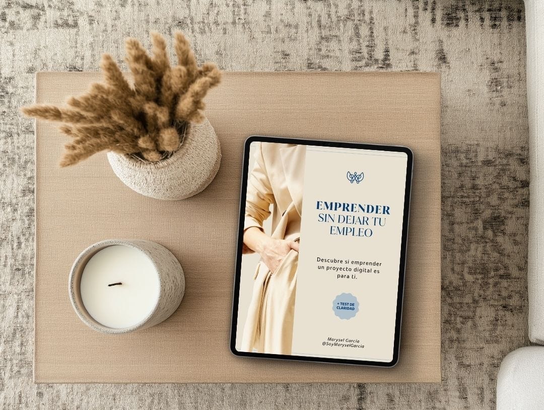Esta mini guía te ayudará a identificar si estás lista para emprender en digital mientras mantienes tu empleo actual. Incluye un test de autodiagnóstico, una brújula de enfoque y los primeros pasos estratégicos para empezar sin caos ni improvisación.